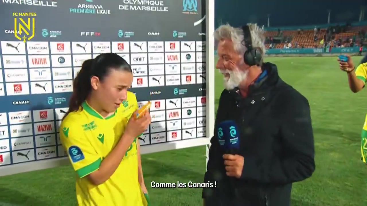 上海正规手机股票配资论坛 有趣一幕!南特女足球员赛后采访时与队友玩水枪