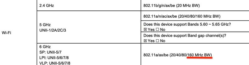 不过,MacRumors 发现该芯片在 Wi-Fi 7 的最大通道带宽存在一定限制。FCC 文件显示,N1 芯片在所有新款 iPhone 上仅支持 160 MHz 的 Wi-Fi 7 带宽,而非标准的 320 MHz 规格。